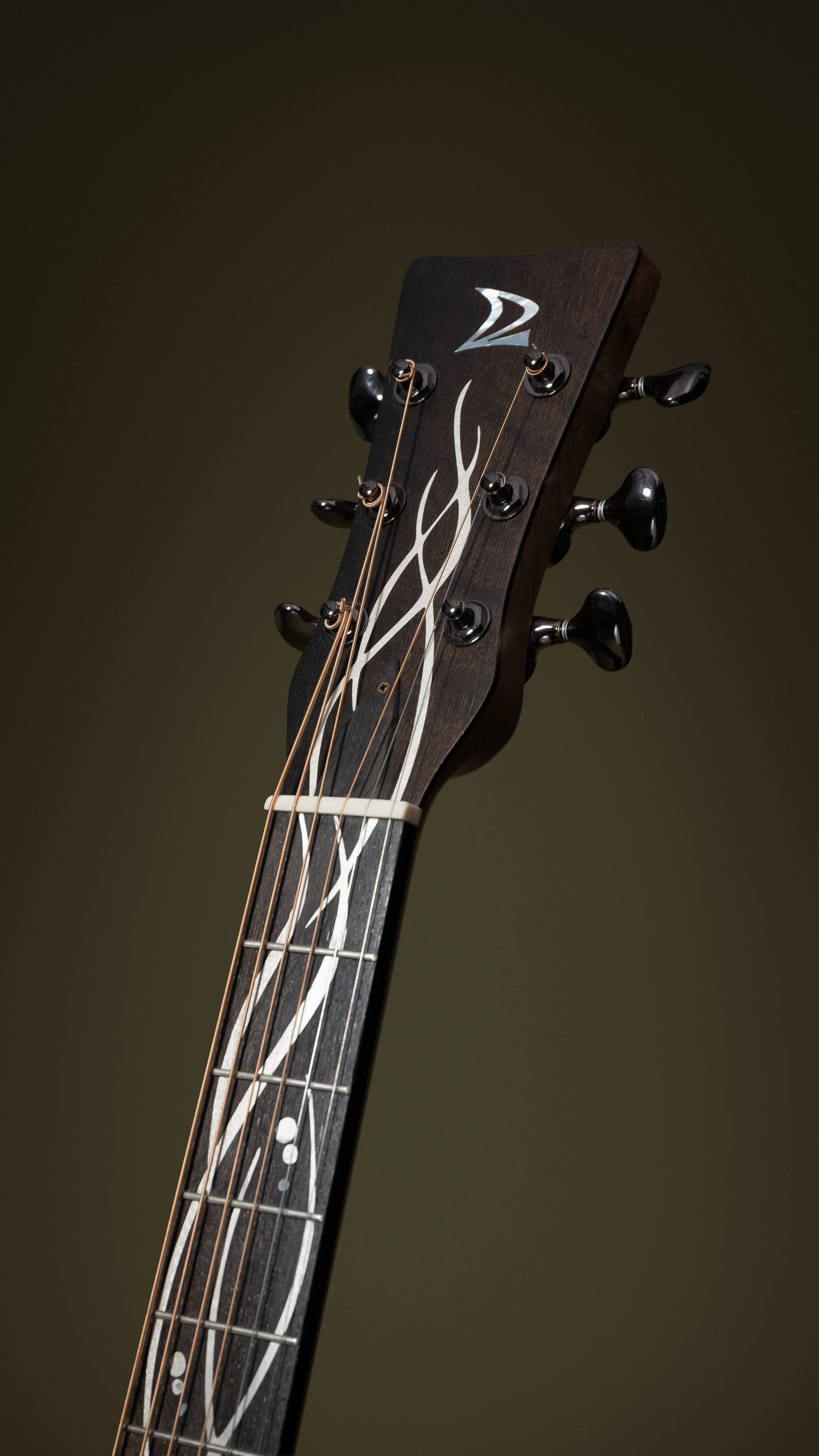 An OM sized guitar designed as a collaboration with Rauni Higson, world renowned silversmith. this instrument has the following specifications: